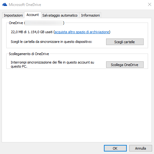 Con un clic col tasto destro del mouse sull’icona di OneDrive mostrata nella traybar di Windows 10 quindi scegliendo Impostazioni, cliccando su Account ed infine facendo clic su Scegli cartelle, si possono specificare le cartelle il cui contenuto dev’essere sincronizzato con il cloud Microsoft.
