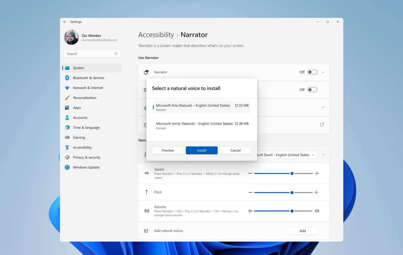 La prima novità riguarda l’accessibilità, con l’introduzione di voci più naturali per Narrator, per scenari come la navigazione sul web, la lettura e la composizione della posta e altro ancora.