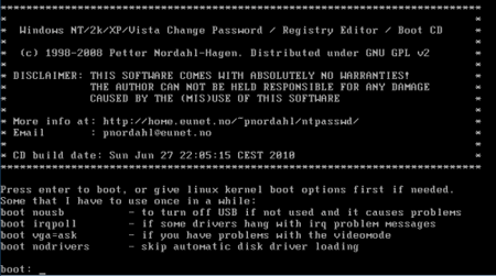 Guida al tool gratuito Offline NT Password & Registry Editor, in grado di cancellare gli account presenti su qualsiasi sistema Windows.