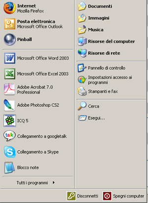 Windows XP memorizza automaticamente gli ultimi programmi avviati e li visualizza