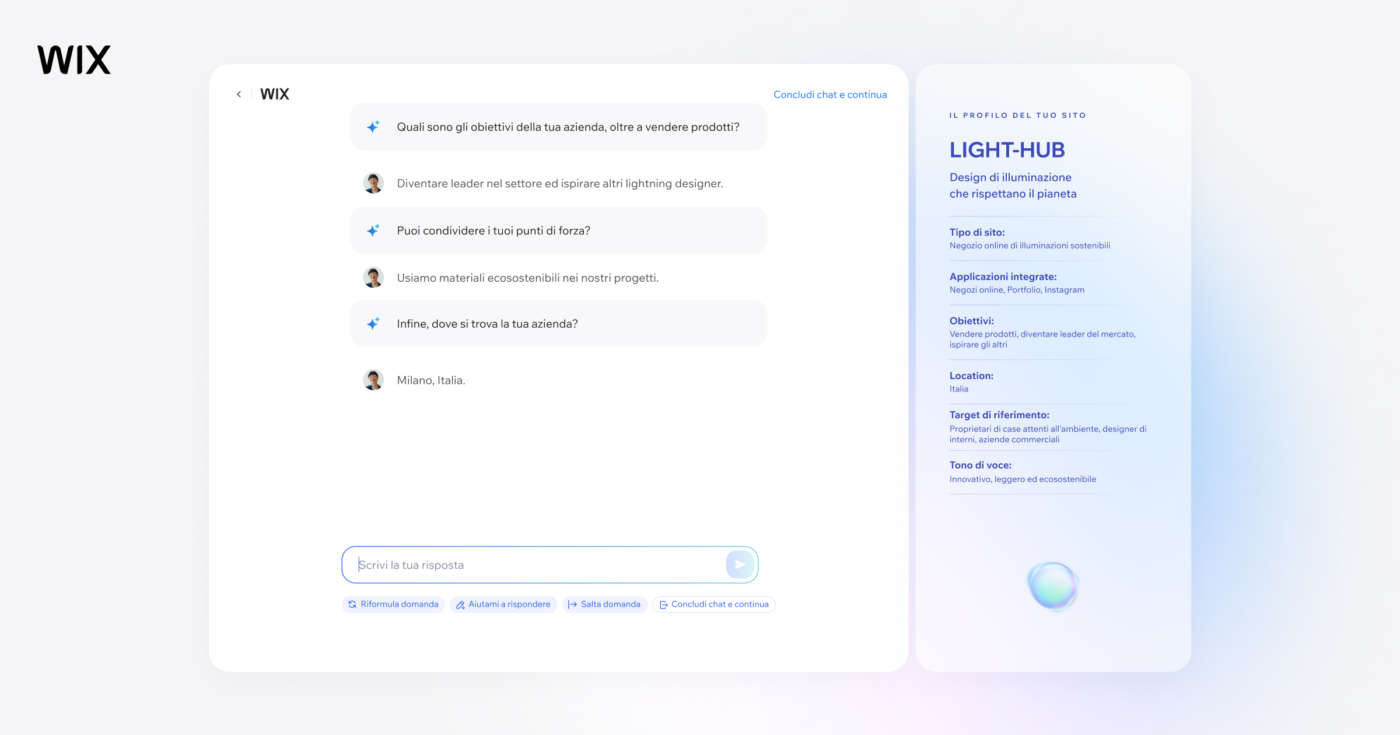 Attraverso un’esperienza di chat AI conversazionale, gli utenti di Wix possono definire le proprie idee e obiettivi, avendo come risultato immediato un sito web professionale e dal design unico, con incluse pagine pertinenti e soluzioni aziendali come pianificazione, eCommerce, gestione degli eventi e altri elementi ancora.