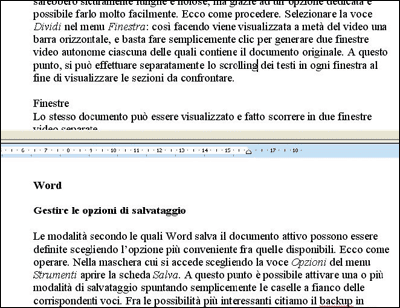 Talvolta, se operiamo con documenti di grandi dimensioni, può presentarsi la necessità di visualizzarne il testo in due finestre separate per avere la possibilità di confrontarne sezioni anche molto lontane fra loro. Le necessarie operazioni sarebbero …