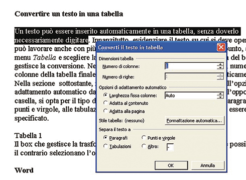 Un testo può essere inserito automaticamente in una tabella, senza doverlo