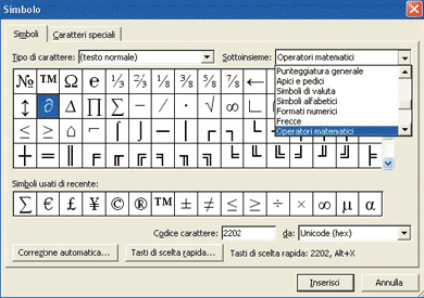 Capita piuttosto spesso di dover inserire in un documento simboli particolari