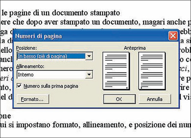 di pagina, e nel box che viene visualizzato impostare posizione, allineamento,