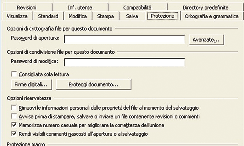 maschera che viene visualizzata accedere alla scheda Protezione.