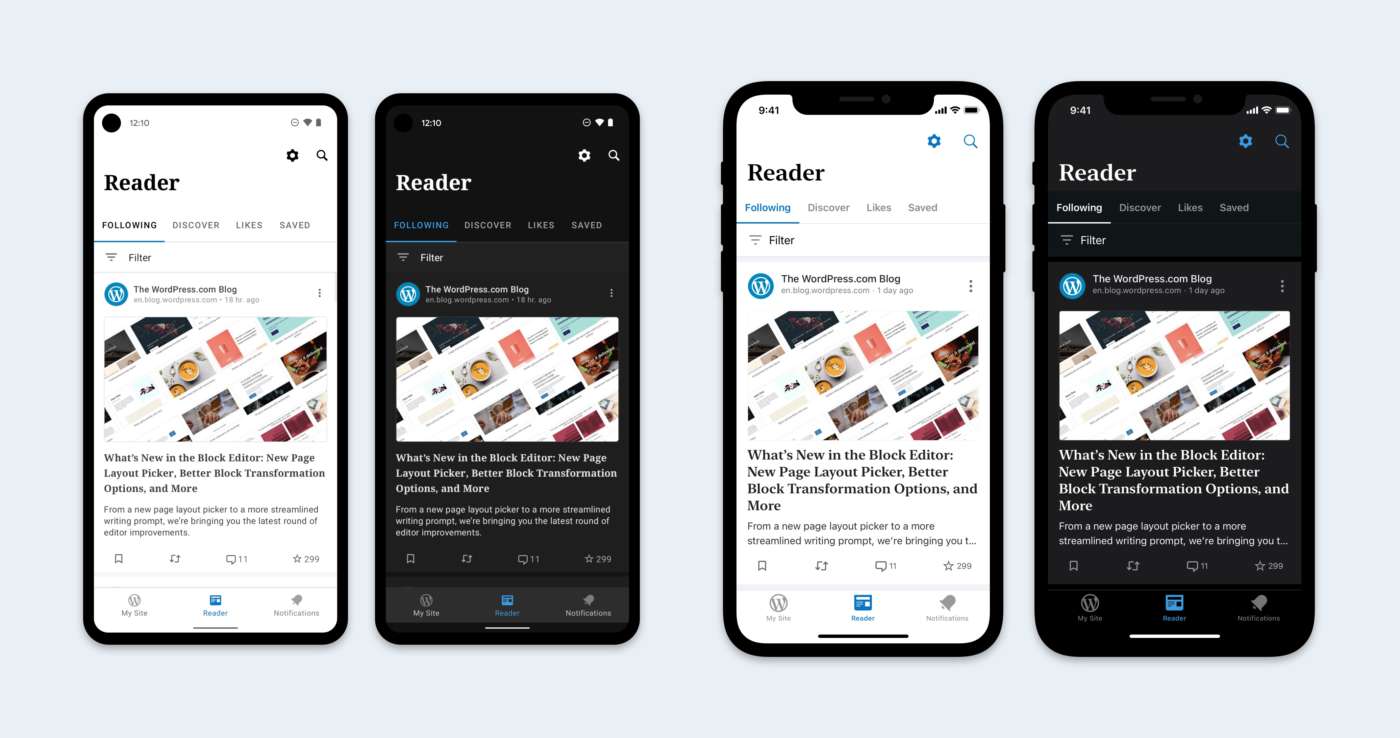 Per questo motivo, negli ultimi mesi il team si è messo al lavoro per modernizzare il design delle app. Come avvenuto per funzionalità come la Dark Mode (che è disponibile sia su dispositivi iOS che Android), il team di WordPress ha anche tratto vantaggio dai nuovi componenti resi disponibili nelle ultime versioni dei sistemi operativi mobili.