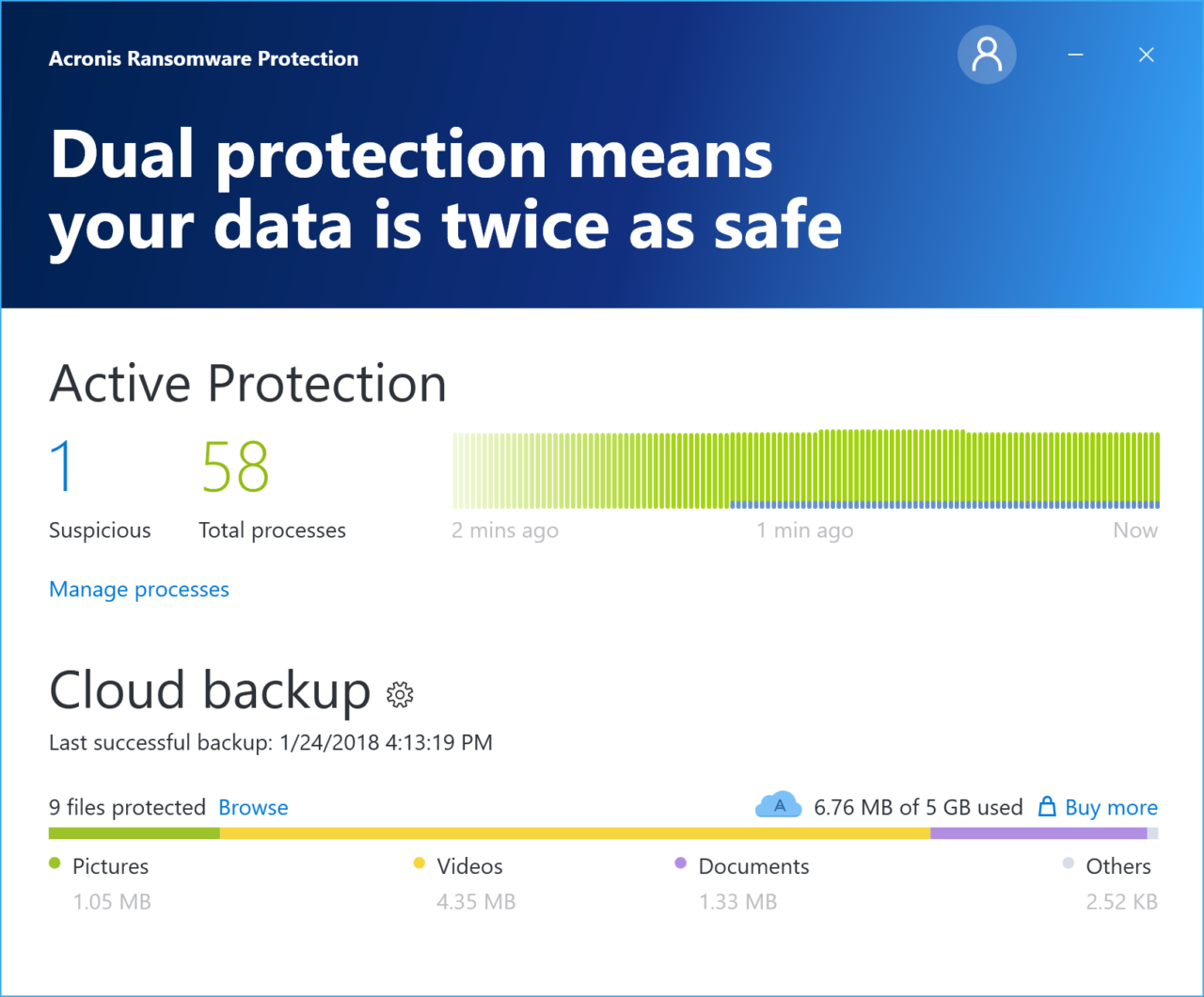 Acronis ha presentato anche Acronis Active Protection Free, un livello di difesa aggiuntivo utilizzabile insieme ad altre soluzioni di protezione dei dati come antivirus e software di backup. Il programma monitora i processi del sistema in tempo reale per rilevare e bloccare automaticamente gli attacchi che le altre soluzioni non riescono a contrastare. Quando un ransomware colpisce, Acronis Ransomware Protection blocca il processo dannoso e informa l’utente con un messaggio a comparsa. Se durante l’attacco sono stati danneggiati dei file, ne facilita anche il ripristino istantaneo.