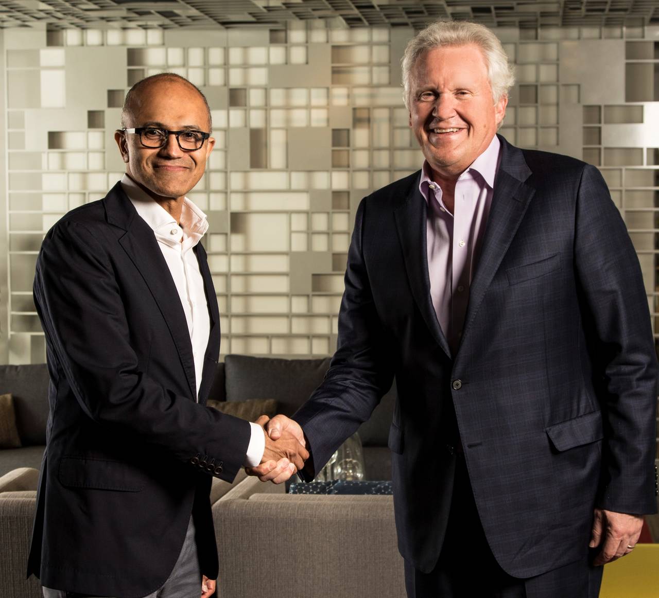 Sul palco i due Ceo, Satya Nadella e Jeff Immelt, insieme per annunciare una collaborazione che vede la disponibilità della piattaforma per l’Internet Industriale Predix su Microsoft Azure.