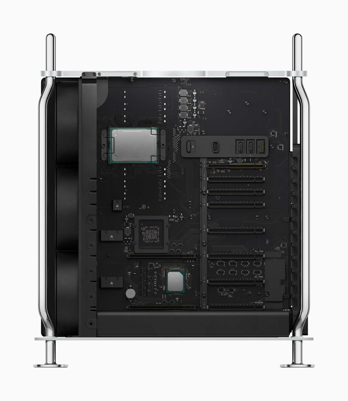 Mac Pro offre ora processori Intel Xeon fino a 28 core, un sistema di memoria ad alte prestazioni che può raggiungere la ragguardevole capacità massima di 1,5 TB grazie ai 12 slot DIMM nonché otto slot di espansione PCI Express. A proposito di flessibilità e modularità, le schede di espansione PCI, assenti da anni, tornano sul Mac: i professionisti potranno finalmente tornare a configurare, personalizzare ed espandere il proprio Mac esattamente come da necessità e desiderio.