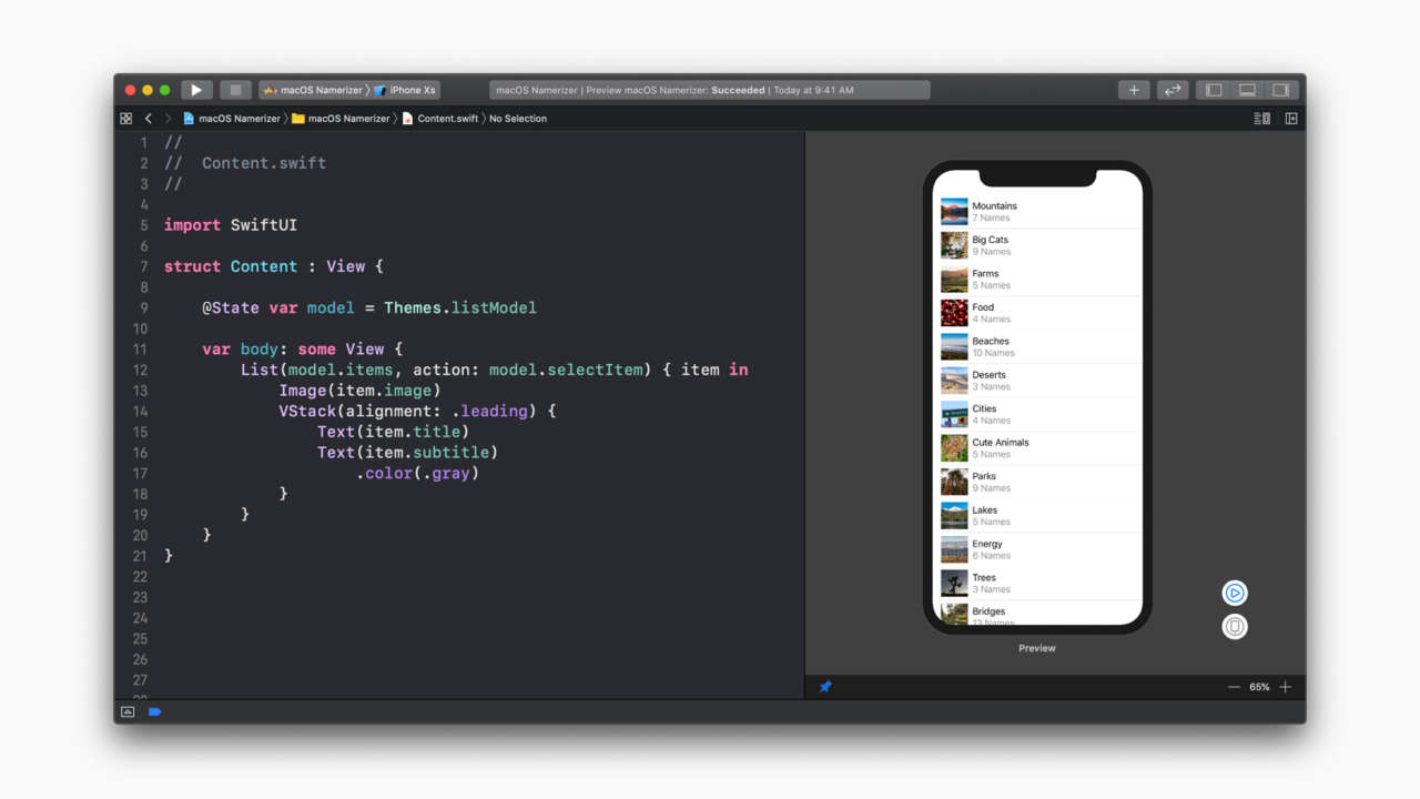Ecco che entra in gioco quest’ultima novità: SwiftUI offre un nuovo framework estremamente intuitivo che consente di realizzare interfacce utente complesse e potenti. Grazie a un codice dichiarativo semplice e di facile comprensione, gli sviluppatori possono dare vita a UI ricche di funzioni evolute e animazioni fluide.
