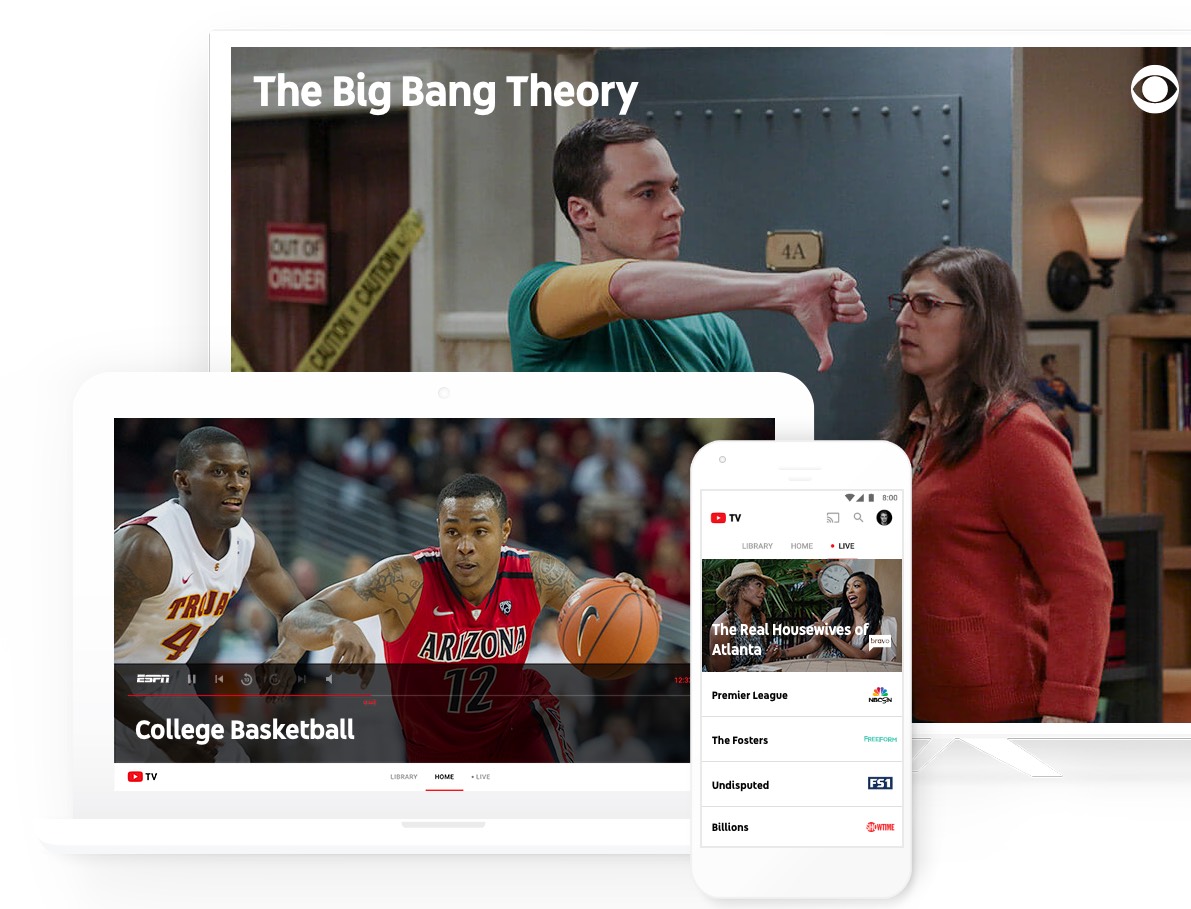 I contenuti di YouTube TV si possono vedere su qualsiasi dispositivo (computer, tablet, smartphone) e ovviamente anche sullo Smart TV di casa. Comprende anche tutti i contenuti di YouTube e anche quelli normalmente a pagamento di YouTube Red. È previsto un abbonamento mensile di 35 dollari che consente l’utilizzo da parte di sei utenti (al massimo tre contemporaneamente), ciascuno con una “area DVR” separata dagli altri.