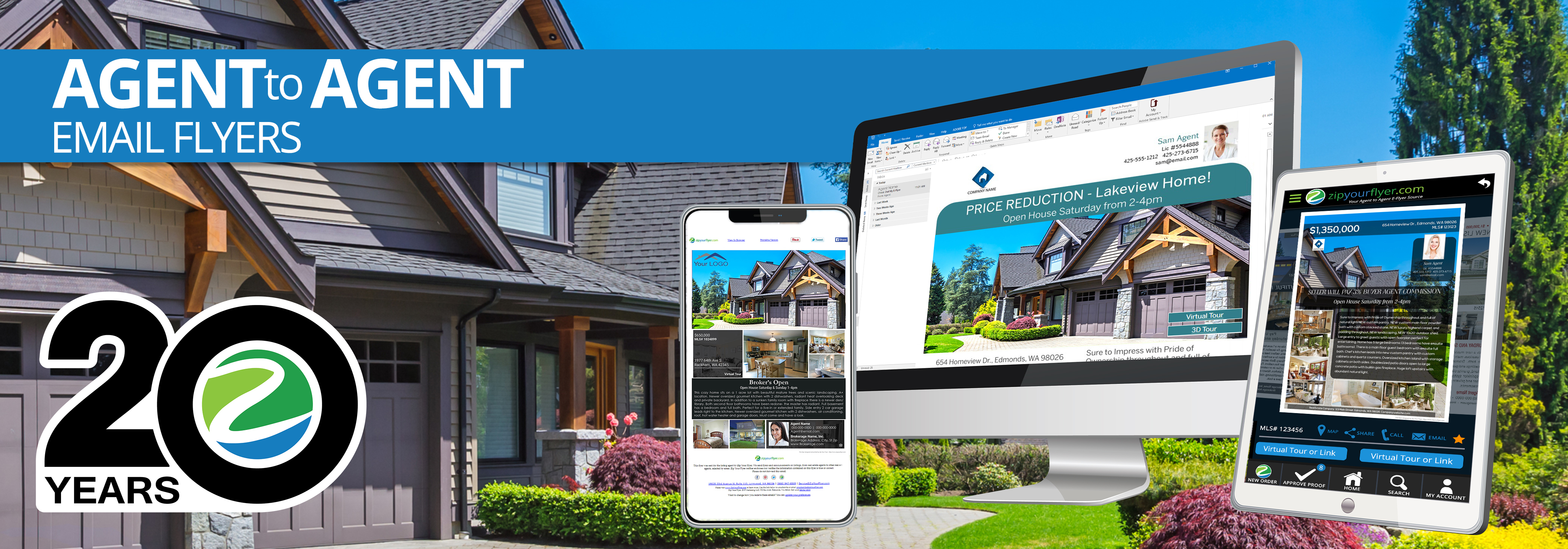 EDMONDS, Wash.--(BUSINESS WIRE)--#realestateagent--Twenty years ago, ZipYourFlyer.com set out with a simple mission: to create the most effective agent-to-agent real estate flyer service in the industry. Today, as we celebrate this milestone anniversary, we're proud to reflect on two decades of innovation, growth and unparalleled service to America's real estate professionals. Zip Your Flyer is needed now more than ever for real estate agents to communicate their listings and agent compensation offerings to one another.