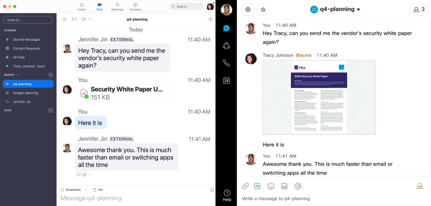 Ed è federando queste API e lavorando con partner come Zoom e Cisco per sviluppare nuove API, che Mio è in grado di offrire un’interoperabilità senza soluzione di continuità tra Webex, Microsoft Teams, Slack e, più recentemente, Zoom.