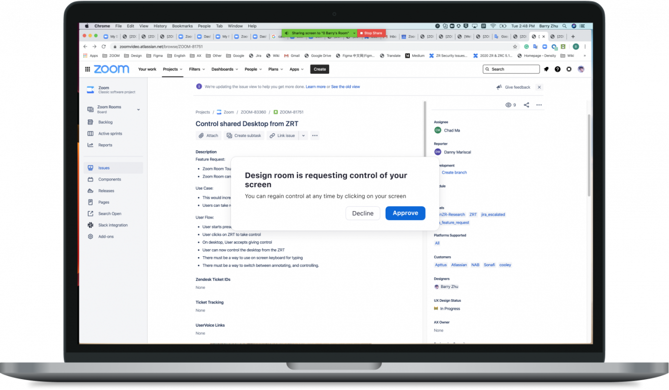 Gli utenti di Zoom Rooms for Touch possono anche controllare direttamente dal loro dispositivo il desktop della persona che sta condividendo lo schermo, semplificando ulteriormente la collaborazione.