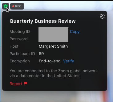 Gli host e i co-host possono già segnalare gli utenti dall’icona Sicurezza, ma ora i partecipanti alla riunione possono anche segnalare un utente che disturba direttamente dal client Zoom cliccando sul badge Security.