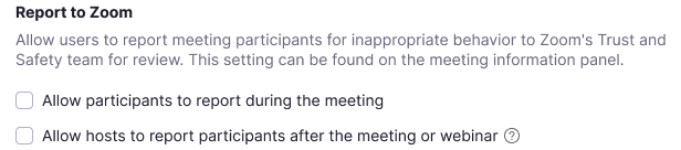 Agli hosts o co-host verrà chiesto se desiderano segnalare un utente della loro riunione, condividere i dettagli e, facoltativamente, includere uno screenshot. Una volta inviate queste informazioni, l’utente segnalato sarà rimosso dalla riunione e il team Trust & Safety di Zoom ne verrà informato.